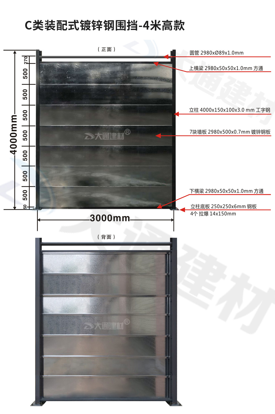 了解更多關于“大通建材 C類鋼結構鍍鋅鋼圍擋”生產定制、配送安裝、零售批發的價格及規格等詳情,請致電13826562448梁先生