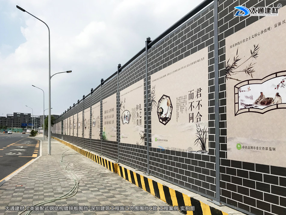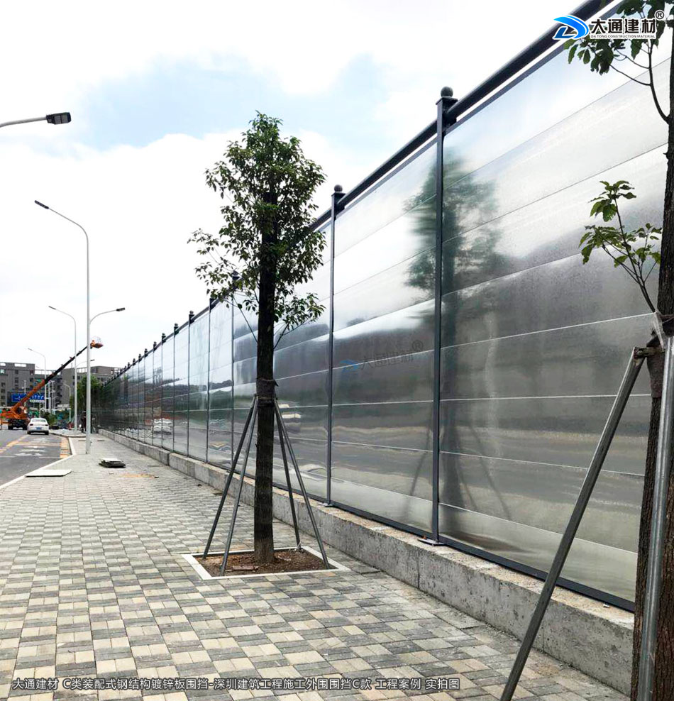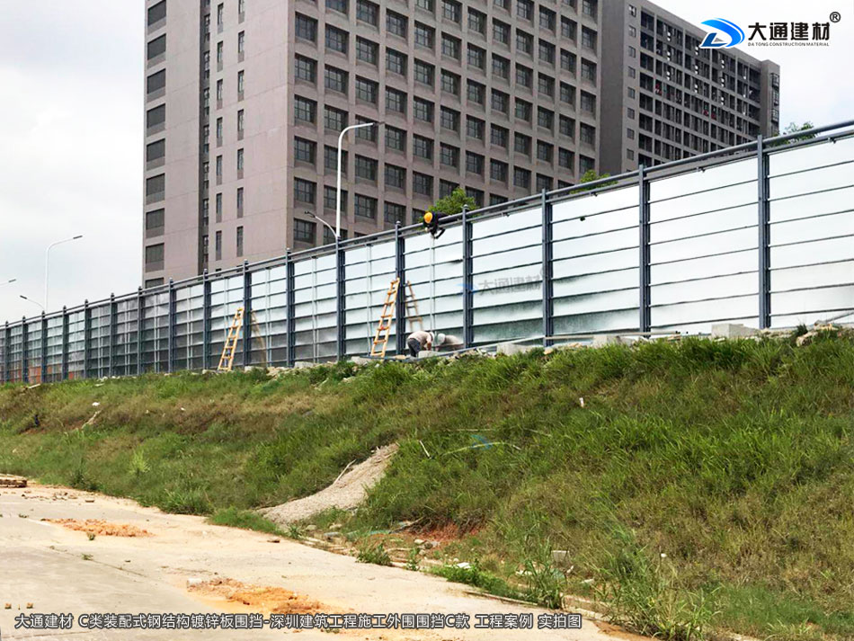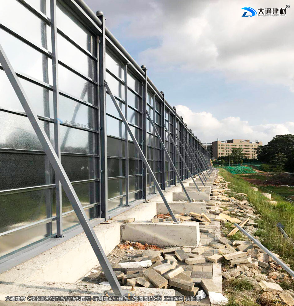 深圳市大通建材生產的C類裝配式鍍鋅鋼結構圍擋4米高定制款,把深圳市龍華區建筑工程施工現場圍起來,為施工安全保駕護航。