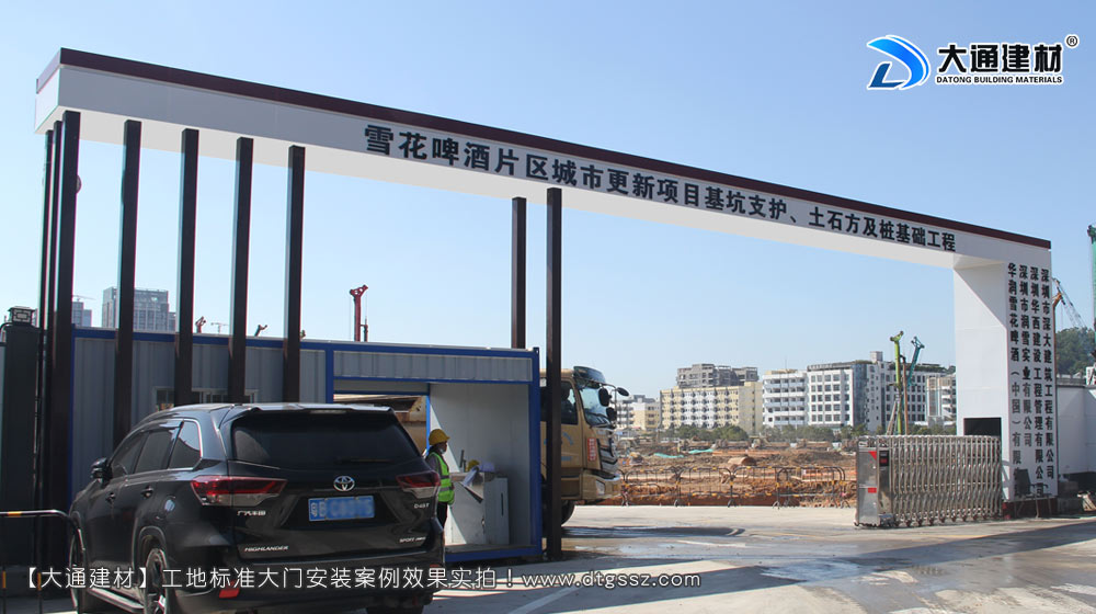 深圳雪花啤酒廠施工大門-基坑支護與土石方工程施工大門-工地大門-深圳市大通建材有限公司鋼圍擋生產(chǎn)定制廠家
