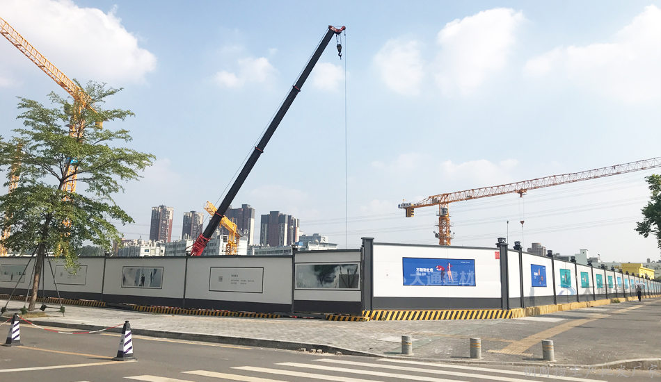 深圳市大通建材裝配式鋼結(jié)構(gòu)圍擋A型可以進(jìn)行快速拼裝,深圳寶安國(guó)際藝展中心工地施工項(xiàng)目在安裝好施工圍擋后,施工單位開(kāi)始進(jìn)行各種施工,最大可能的保障第三方的安全。