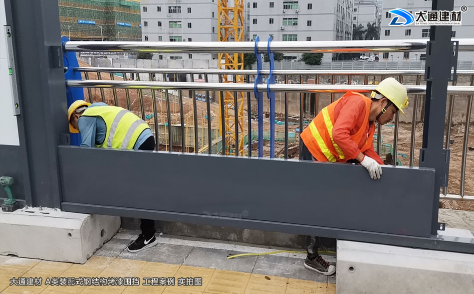 專業(yè)圍擋供應廠家深圳市大通建材有限公司,為東莞市麻涌鎮(zhèn)工程施工項目單位提供的A類裝配式鋼結構烤漆工地施工圍擋半龍骨款及圍擋基礎塊等隔離防護產(chǎn)品,應用到工程項目中效果如下圖展示。