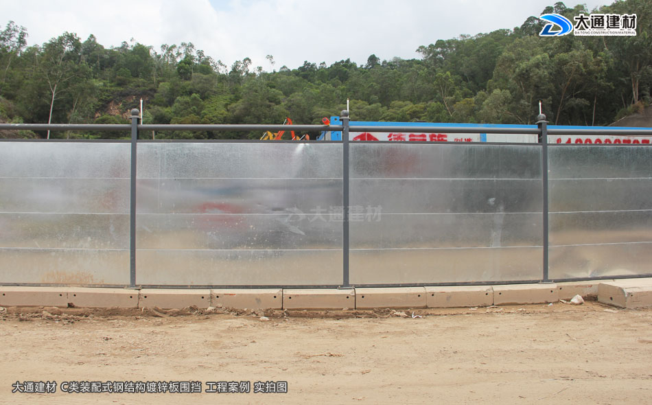 深圳市大通建材鍍鋅板鋼圍擋C款的圍擋墻板采用鍍鋅工藝,圍擋每一檔的長度都是3米,此工程項目使用的大通建材鍍鋅圍擋C款的高度是2.4米,這一款圍擋是帶立柱帽子的,符合市政標準。鍍鋅板鋼圍擋C價格與比圍擋烤漆C款相價格更便宜些,備受工程施工項目單位喜愛。