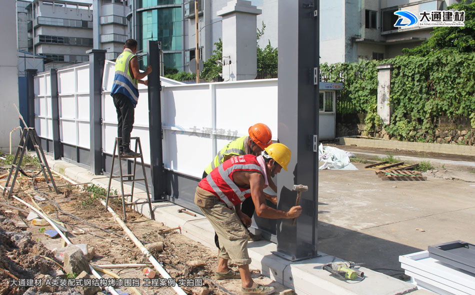 深圳大通建材生產(chǎn)符合惠州市政新標準的惠州圍擋A款,這是一款新型裝配式鋼結(jié)構(gòu)烤漆圍擋,拆裝方便、抗風力強、安全性高,已廣泛應用于惠州各地區(qū)的房地產(chǎn)建設(shè)工程項目中。