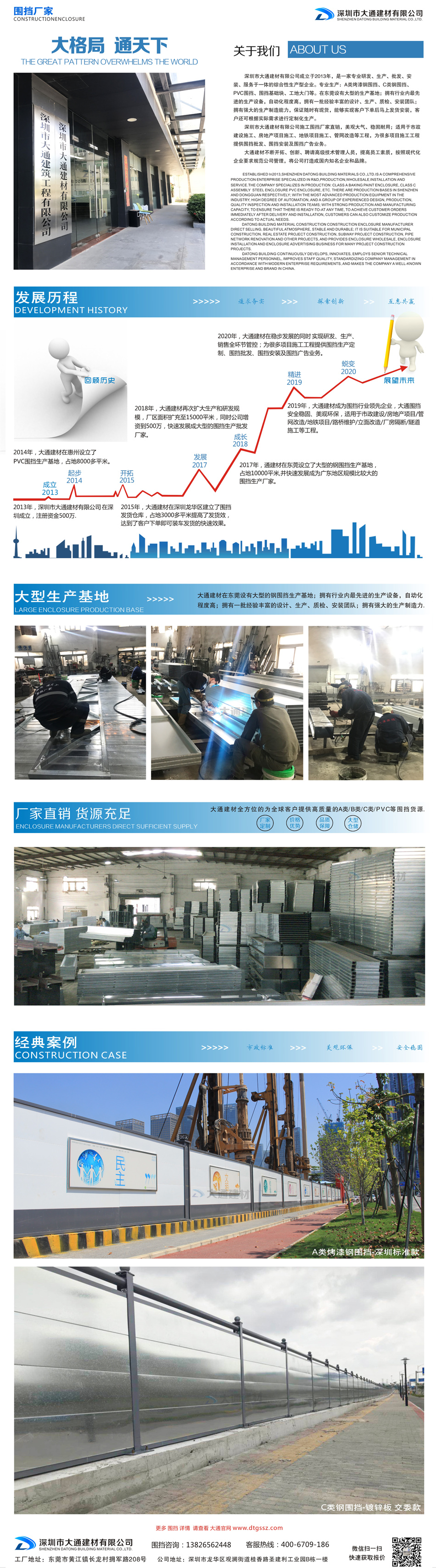 深圳市大通建材有限公司是一家集研發(fā)、生產(chǎn)、安裝、服務(wù)于一體的綜合性圍擋廠家,