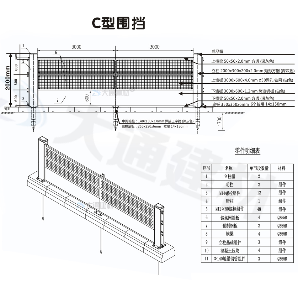 C型圍擋-2米高裝配式鋼圍擋