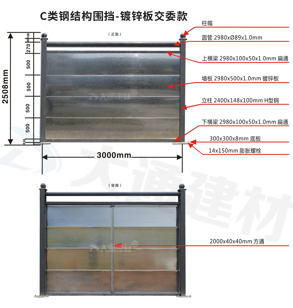 深圳大通建材 C類鍍鋅板鋼結(jié)構(gòu)圍擋-交委款 產(chǎn)品特點