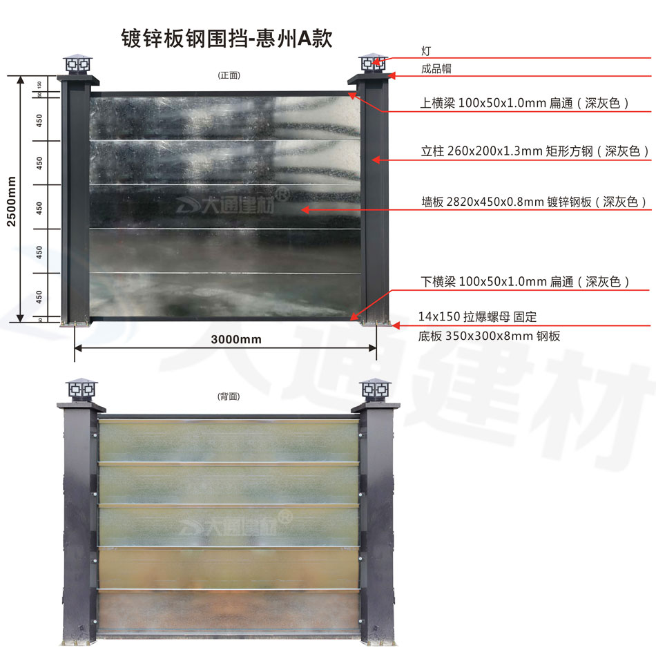 深圳大通建材 鍍鋅板裝配式鋼圍擋-惠州A款 安裝說明