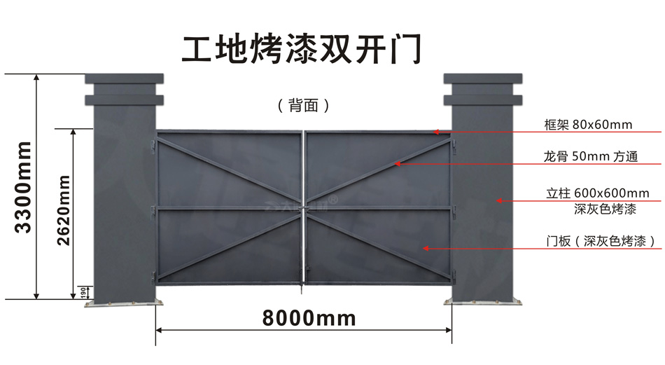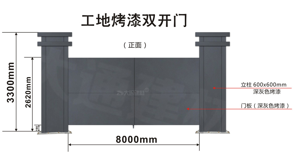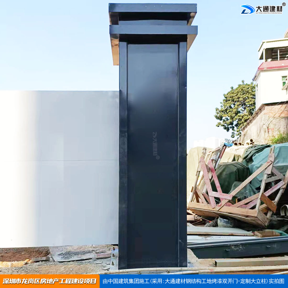 大通建材 工地烤漆雙開門-鋼結(jié)構(gòu)工地大門(深灰色烤漆+ 定制大立柱)案例展示